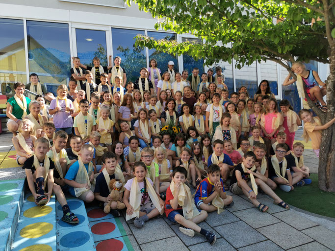 Kindergartenkinder im Lesekaffeehaus der Volksschule